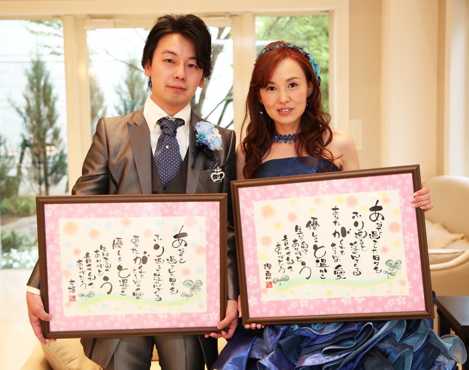 お父さん、お母さんのお名前の頭文字を一文字取り入れた感動のポエムです。