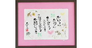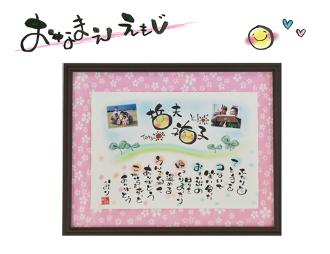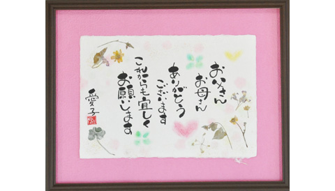 両親のとの思い出を教えて頂き、えもじ作家のまつばらかおりさんに一枚一枚心をこめて手書きで書いて頂きますので、